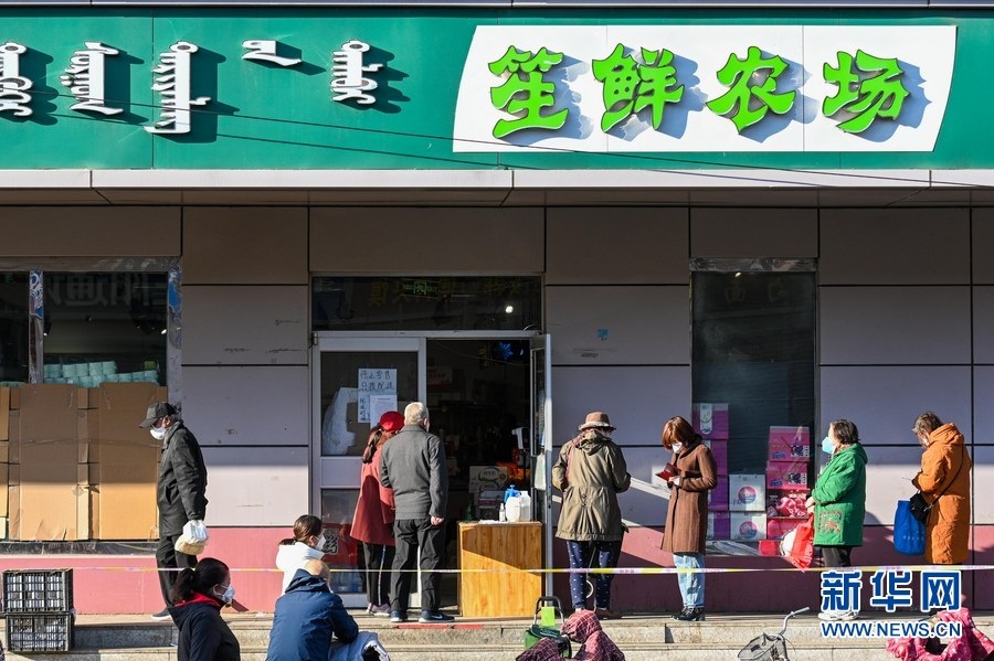 11月17日,市民在呼和浩特市新城區(qū)的商店排隊(duì)購(gòu)物。新華社記者 王澤聰 攝