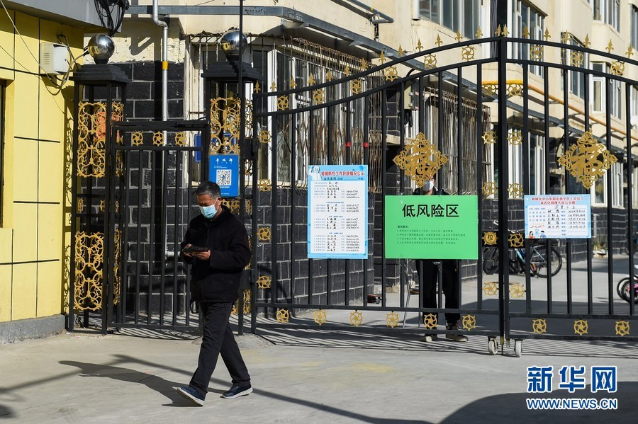 11月17日,在呼和浩特市新城區(qū),居民走出小區(qū)。新華社記者 王澤聰 攝