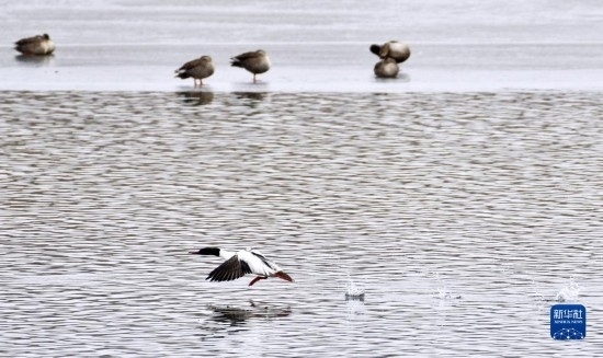 各種鳥(niǎo)類(lèi)在北京園博湖上棲息、飛翔(2月14日攝)。
