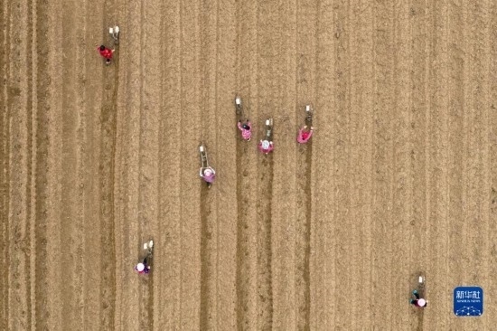 2月16日,村民在湖北省武漢市經(jīng)開(kāi)區(qū)鄧南街田間進(jìn)行播種作業(yè)。