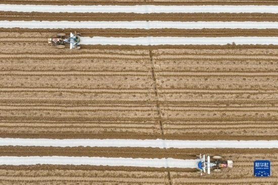 2月16日,村民在湖北省武漢市經(jīng)開(kāi)區(qū)鄧南街田間進(jìn)行播種作業(yè)(無(wú)人機(jī)照片)。