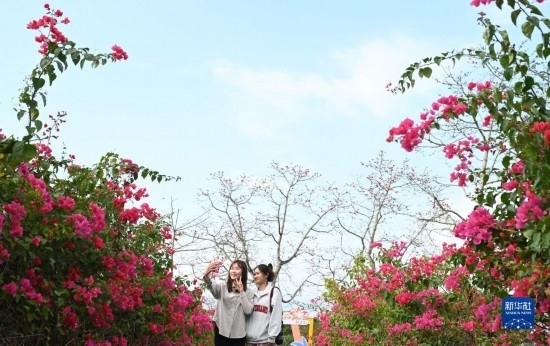 2月17日,游客在海南昌江觀賞木棉花。