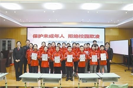 2月13日,廣西壯族自治區(qū)河池市宜州區(qū)人民法院干警一行來到河池市宜州區(qū)實驗小學,以“保護未成年人 拒絕校園欺凌”為題,利用線上線下直播的方式,給全校3800余名師生送上開學法治第一課。