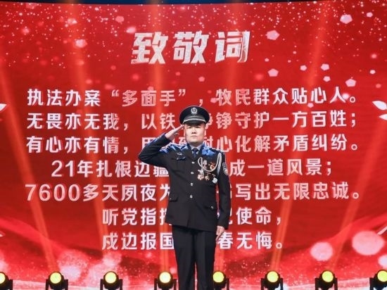 “有選擇就有犧牲,就像我們的愛情一樣,你愛著我們這個(gè)家,我愛著邊境和你,希望我們的生活圓圓滿滿!”在2022年度內(nèi)蒙古自治區(qū)“十大法治事件暨十佳法治人物”頒獎(jiǎng)典禮上,黃健對(duì)屏幕前的妻子深情講述。這段黃健對(duì)妻子多年來(lái)默默承受和付出的真情告白,贏得在場(chǎng)全體觀眾雷鳴般的掌聲。