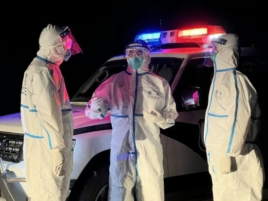 圖為疫情期間,黃健現(xiàn)場(chǎng)帶領(lǐng)民警開展防疫查驗(yàn)工作