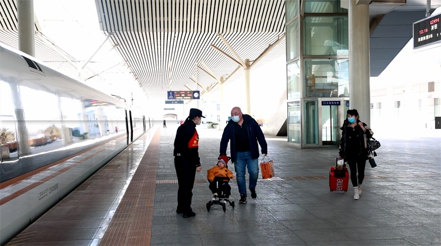 “旅客們出門在外,難免遇到一些問題,我做的雖然不是驚天動地的大事兒,但只要能幫到別人,我就覺得很開心?!?023年1月,正在站臺巡視的陳甜甜發(fā)現(xiàn)一位手拿拐杖的旅客顫巍巍地走近列車,她主動上前詢問。原來,這位旅客是一名盲人,獨(dú)自一人準(zhǔn)備從北京乘車回包頭。為更好地照顧這位特殊的旅客,陳甜甜帶著他尋找座位、幫他放置行李。乘車途中,陳甜甜還細(xì)心地請男乘務(wù)員同志帶他如廁方便,讓對方感到無微不至的關(guān)懷。