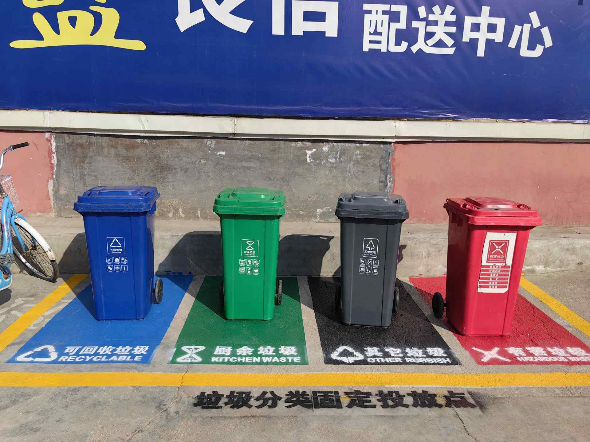 當(dāng)日下午,記者來到農(nóng)貿(mào)市場西門,只見紅、綠、藍(lán)、黑四種分類垃圾桶整齊陳列,地面上畫了對(duì)應(yīng)顏色的標(biāo)識(shí)和投放垃圾類別的文字簡介,“垃圾分類固定投放點(diǎn)”幾個(gè)大字非常顯眼。像這樣的“地標(biāo)”市場里不止一處,在農(nóng)貿(mào)市場北門,工人們正在給“垃圾分類投放地標(biāo)”噴漆,南門西側(cè)的“地標(biāo)”也完成了基礎(chǔ)設(shè)置。此舉旨在完善分類垃圾桶宣傳告知功能,讓更多人清晰了解分類垃圾桶的具體功能,防止垃圾混投,實(shí)現(xiàn)精準(zhǔn)投放。