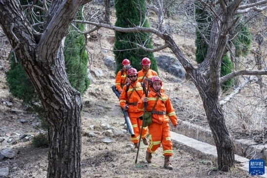 3月15日,長清區(qū)國有蓮臺山林場防火中隊隊員準(zhǔn)備進(jìn)入林區(qū)巡護(hù)。