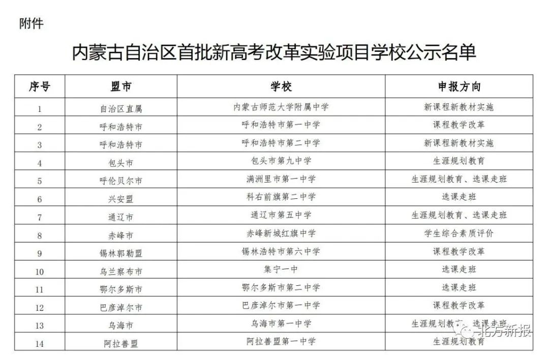 附件:內(nèi)蒙古自治區(qū)首批新高考改革實(shí)驗(yàn)項(xiàng)目學(xué)校公示名單