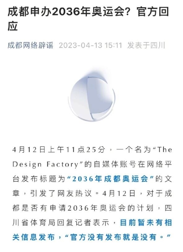 ·官方回應成都申辦2036年奧運會:官網(wǎng)未發(fā)布就是沒有。