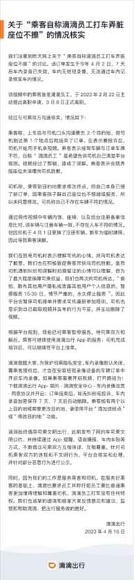 ·滴滴回應(yīng)前員工打車弄臟座位不擦:已對(duì)乘客暫停服務(wù)。