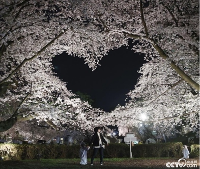 當(dāng)?shù)貢r(shí)間4月15日,日本青森縣弘前市弘前公園的櫻花進(jìn)入盛開季。其中,有兩株盛開的櫻花樹枝相互交織,在空中形成了一個(gè)愛心形狀,成為熱門觀光景點(diǎn)。