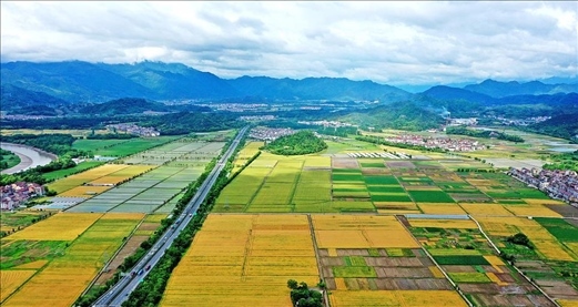 浙江臨海,永豐鎮(zhèn)田園里麥田與青山構(gòu)成了一幅美麗的田園畫卷。