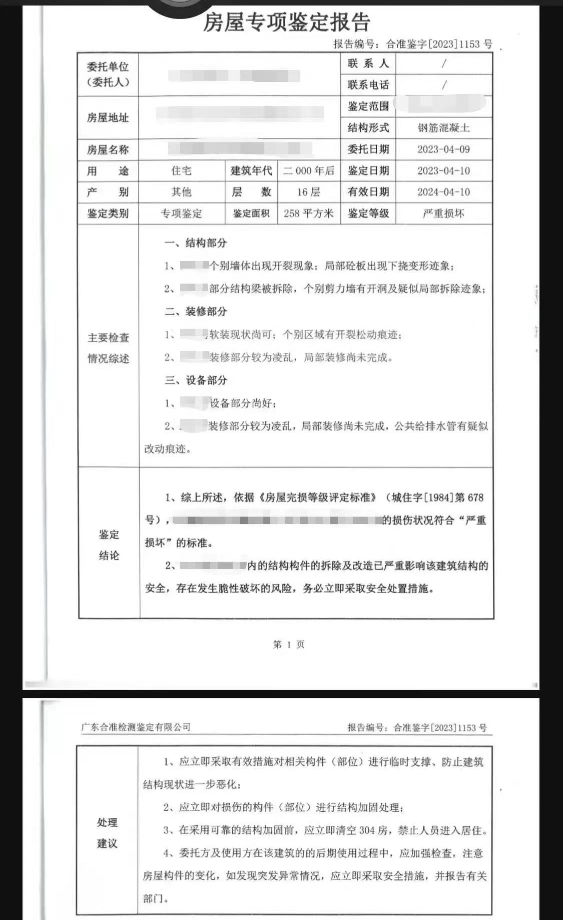 經鑒定,204房、304房的損傷程度已構成“嚴重損壞”。