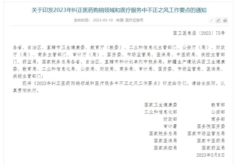 ·14部門聯(lián)合發(fā)文:糾正醫(yī)藥購銷領(lǐng)域和醫(yī)療服務(wù)中不正之風。