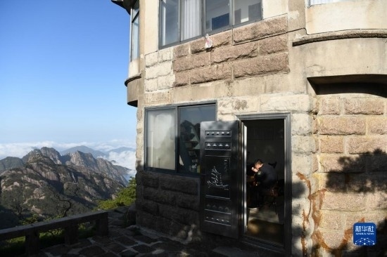 這是5月8日拍攝的黃山風(fēng)景區(qū)平天矼瞭望哨(無人機照片)。