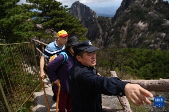 4月20日,秦志平在黃山風(fēng)景區(qū)光明頂附近進行路段巡查。