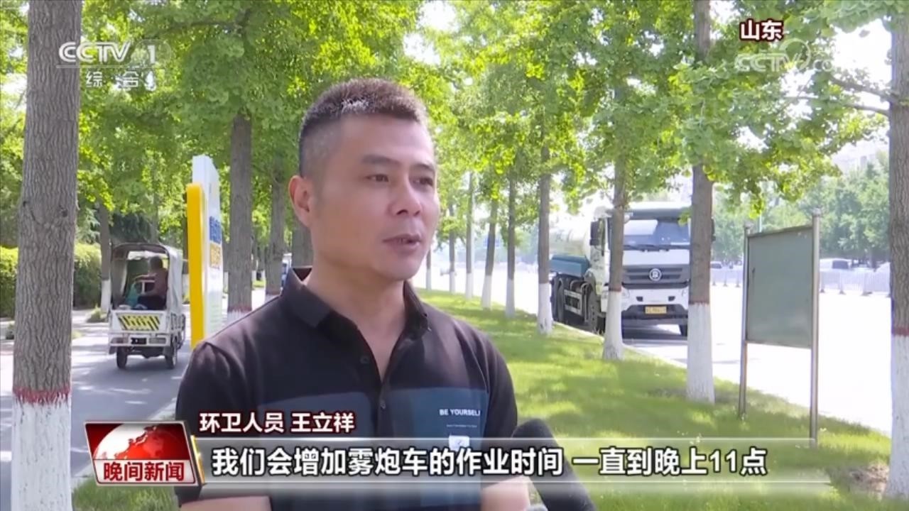 環(huán)衛(wèi)人員 王立祥:如果氣溫連續(xù)升高的話,我們會(huì)增加霧炮車的作業(yè)時(shí)間,一直到晚上11點(diǎn)。