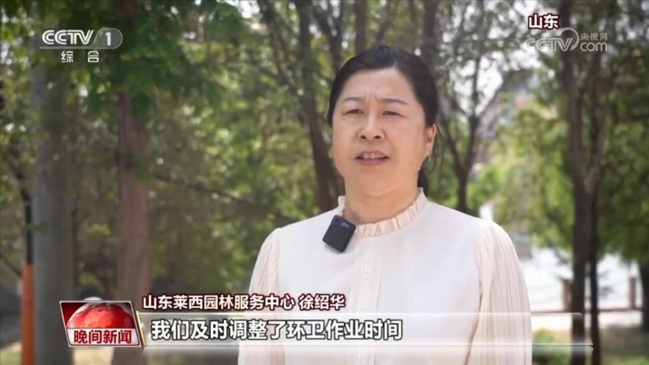 山東萊西園林服務(wù)中心 徐紹華:我們及時(shí)調(diào)整了環(huán)衛(wèi)作業(yè)時(shí)間,當(dāng)氣溫達(dá)到35℃以上時(shí),減少人工戶外作業(yè),加大機(jī)械作業(yè)頻次。同時(shí),我們聯(lián)合全市70多家愛心商戶,并建了30多個(gè)環(huán)衛(wèi)休息間,方便大家休息納涼。