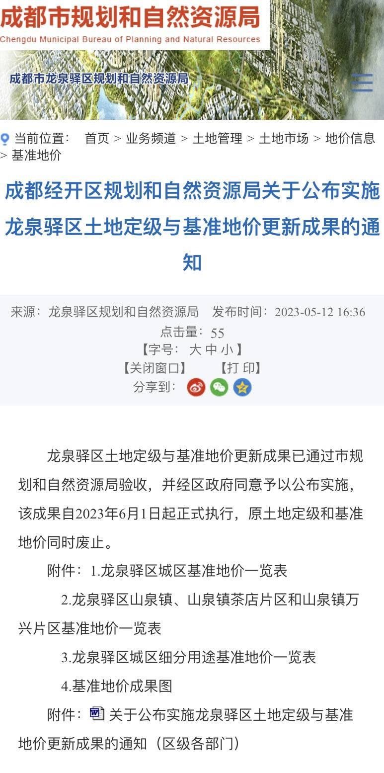 據(jù)悉,成都經(jīng)開(kāi)區(qū)規(guī)劃和自然資源局門(mén)戶網(wǎng)站于2023年5月12日發(fā)布了龍泉驛區(qū)土地定級(jí)與基準(zhǔn)地價(jià)更新成果,此成果嚴(yán)格按照《四川省國(guó)土資源廳辦公室轉(zhuǎn)發(fā)〈國(guó)土資源部辦公廳關(guān)于加強(qiáng)公示地價(jià)體系建設(shè)和管理有關(guān)問(wèn)題的通知〉的通知》(川國(guó)土資辦發(fā)〔2017〕33號(hào))文件要求,經(jīng)龍泉驛區(qū)人民政府批準(zhǔn)后對(duì)外公布,該成果主要內(nèi)容為龍泉驛區(qū)城鎮(zhèn)國(guó)有建設(shè)用地使用權(quán)不同用途評(píng)估的平均價(jià)格,并未標(biāo)注“迪士尼預(yù)留用地”相關(guān)內(nèi)容。