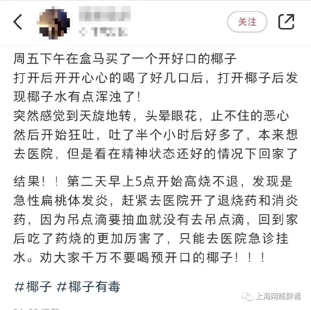 近日,椰子水頻頻登上熱搜,#喝預(yù)開(kāi)口椰子進(jìn)急診#等話題引起網(wǎng)友熱議。有網(wǎng)友反映,自己喝了預(yù)開(kāi)口的椰子水后,惡心嘔吐、高燒不退。