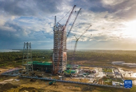 在海南省文昌市拍攝的建設中的海南商業(yè)航天發(fā)射場1號工位(無人機照片,5月12日攝)。