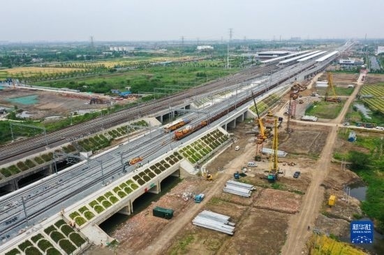 這是5月20日拍攝的滬寧沿江高鐵太倉站施工現(xiàn)場(無人機(jī)照片)。