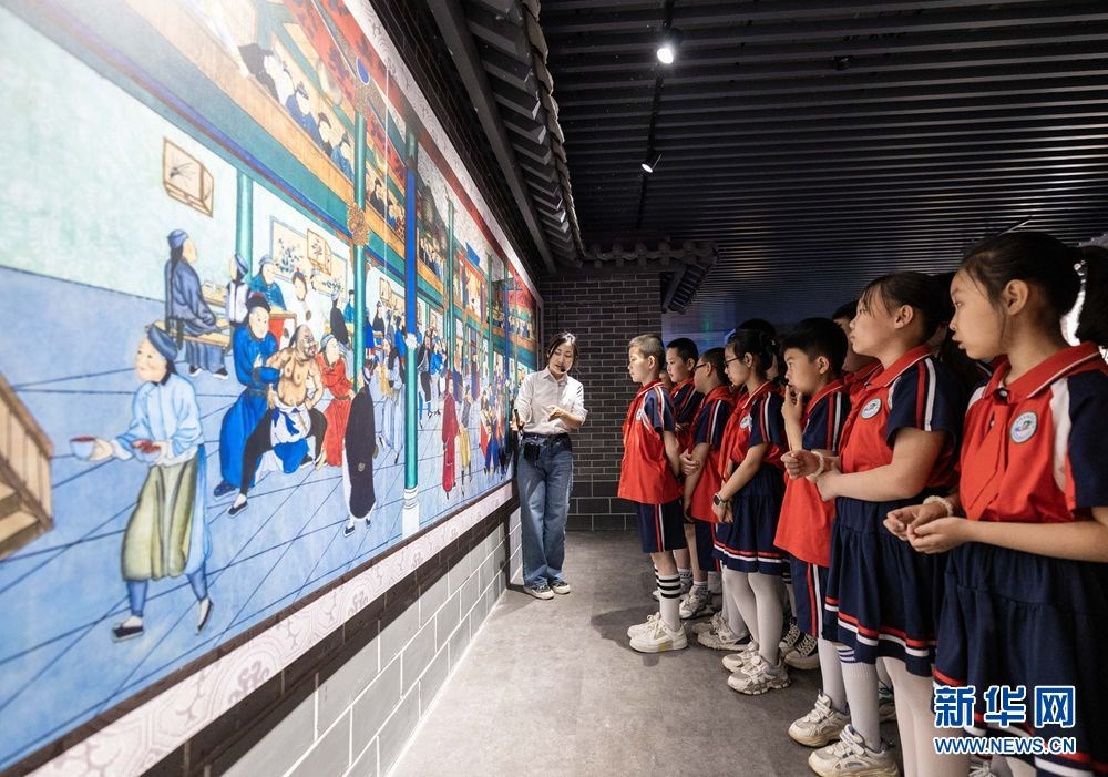 5月17日,呼和浩特市玉泉區(qū)南茶坊小學(xué)學(xué)生在歸化城展示館參觀。新華網(wǎng)發(fā)(丁根厚攝)