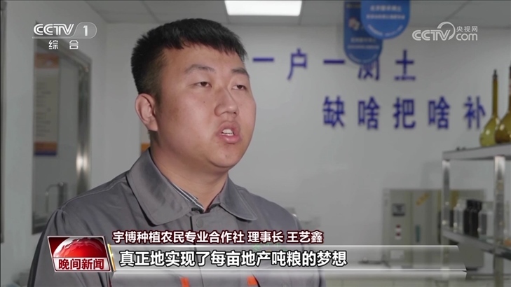 宇博種植農(nóng)民專業(yè)合作社 理事長 王藝鑫:農(nóng)民天然熱愛土地,與土地不可分離,只要是土地提高了一點(diǎn)產(chǎn)量,我都特別驕傲和自豪。作為新時(shí)代的農(nóng)村青年,我希望能回報(bào)國家,回報(bào)父老。