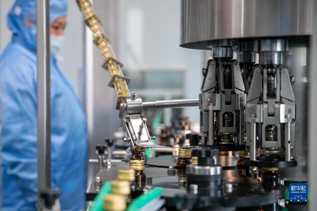 5月24日,在伊春菁樺生物科技有限公司生產(chǎn)車間內(nèi),工人在進(jìn)行樺樹(shù)汁飲品灌裝作業(yè)。