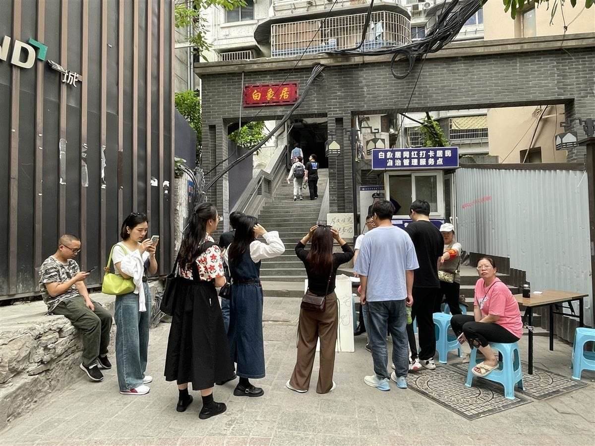 視頻發(fā)布至網(wǎng)絡(luò)后,引發(fā)網(wǎng)友熱議。5月25日,極目新聞?dòng)浾邔?shí)地探訪白象居看到,入口有多名居民自發(fā)值守,“居民住宅,謝絕參觀”的招牌依舊還在,不過(guò)游客可在登記個(gè)人信息后進(jìn)內(nèi)參觀。