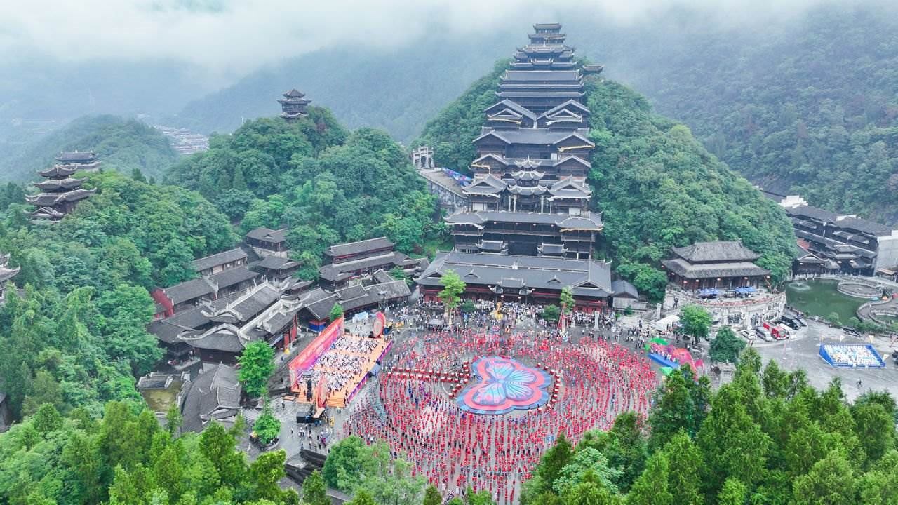 5月26日,2023第十二屆中國烏江苗族踩花山節(jié)在重慶彭水拉開序幕。上萬名苗鄉(xiāng)兒女身著節(jié)日盛裝聚集在這里,共跳踩花山、齊唱“嬌阿依”,現場一片歡樂的歌舞海洋,場面壯觀。