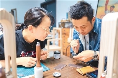 作為今年上海市為民辦實(shí)事項(xiàng)目“社會大美育課堂”的重要組成部分,今年上海市民藝術(shù)夜校春季班共開設(shè)教學(xué)點(diǎn)位123個(gè)、課程278門、招收學(xué)員6507人。夜校學(xué)習(xí)內(nèi)容包括傳統(tǒng)文化、時(shí)尚文化、非遺技藝、江南文化以及區(qū)域文化等。圖為5月8日,上海市寶山區(qū)淞南鎮(zhèn)社區(qū)文化活動中心,老師(右)正在指導(dǎo)學(xué)生皮具制作技巧。王 初攝(人民圖片)
