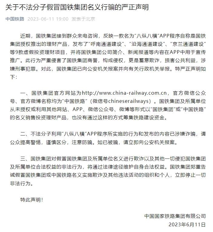·APP程序假冒國鐵集團(tuán)名義行騙,國鐵集團(tuán):已報警。