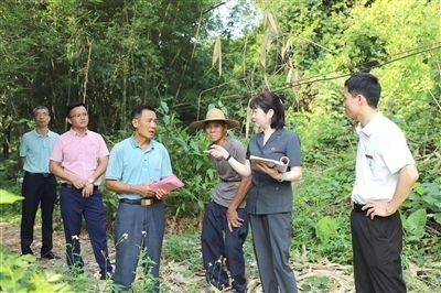 清遠(yuǎn)中院法官到巖前村對(duì)一起土地承包經(jīng)營權(quán)糾紛案進(jìn)行實(shí)地走訪。