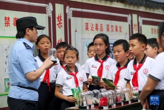6月25日,民警在貴州省安順市禁毒宣傳教育基地為學(xué)生講解毒品相關(guān)知識。