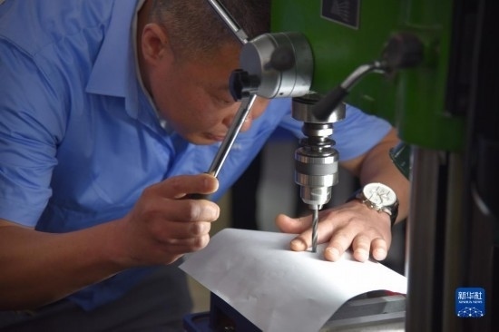 6月27日,技術(shù)工人展示鉆A4紙絕活。