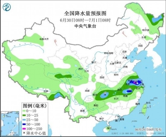圖4 全國降水量預(yù)報圖(6月29日08時-30日08時) 圖自中央氣象臺網(wǎng)站