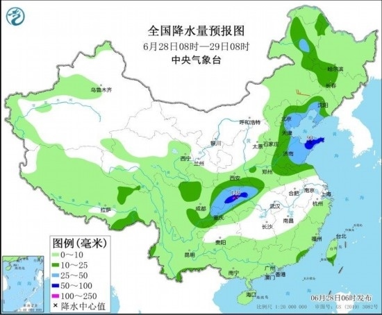 圖3 全國降水量預(yù)報圖(6月28日08時-29日08時) 圖自中央氣象臺網(wǎng)站