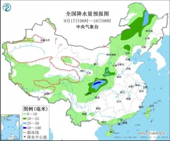 全國降水量預(yù)報(bào)圖(9月17日08時(shí)-18日08時(shí))