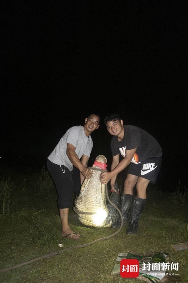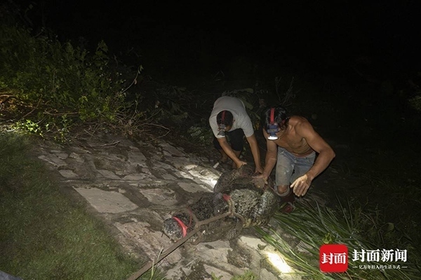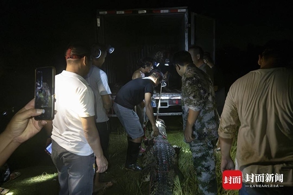 9月16日深夜,封面新聞?dòng)浾邚膹V東茂名茂南區(qū)“出逃”暹羅鱷抓捕現(xiàn)場(chǎng)獲悉,當(dāng)夜有3條暹羅鱷被專業(yè)人員從養(yǎng)殖場(chǎng)外的水域中抓捕上岸。9月11日,茂南區(qū)一鱷魚養(yǎng)殖場(chǎng)因洪水沖塌圍墻造成部分鱷魚“出逃”,經(jīng)過連續(xù)6天的搜尋,截至16日24時(shí),養(yǎng)殖場(chǎng)中原養(yǎng)殖的71條暹羅鱷已有69條被抓獲,僅剩2條仍在搜尋。