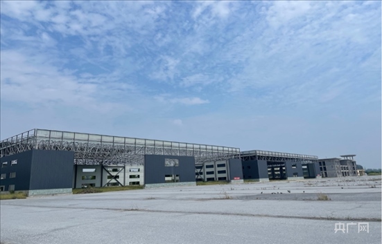 平輿通用機場,機場建筑外墻仍未粉刷,鋼架結構的建筑內長滿荒草。央廣網 圖