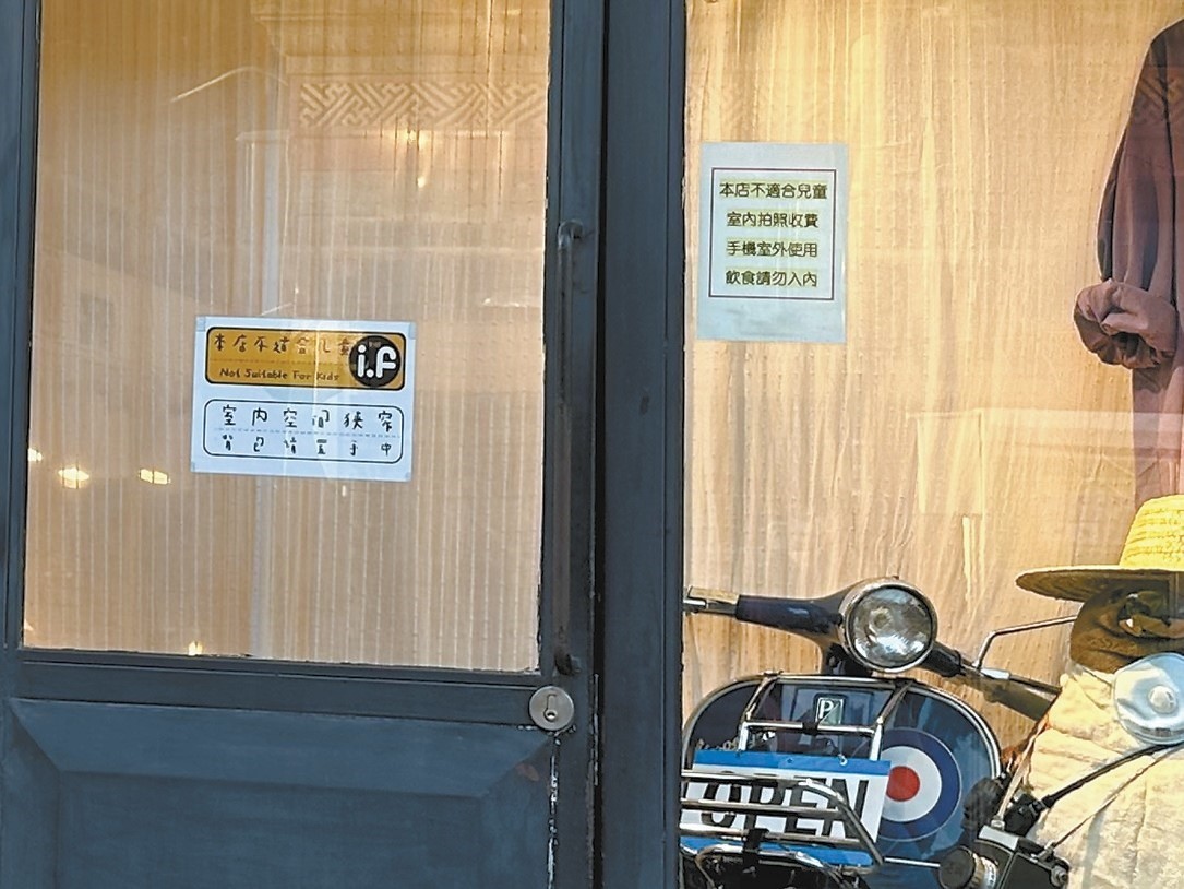 五道營胡同的一家小店門上貼著“本店不適合兒童”的提示。