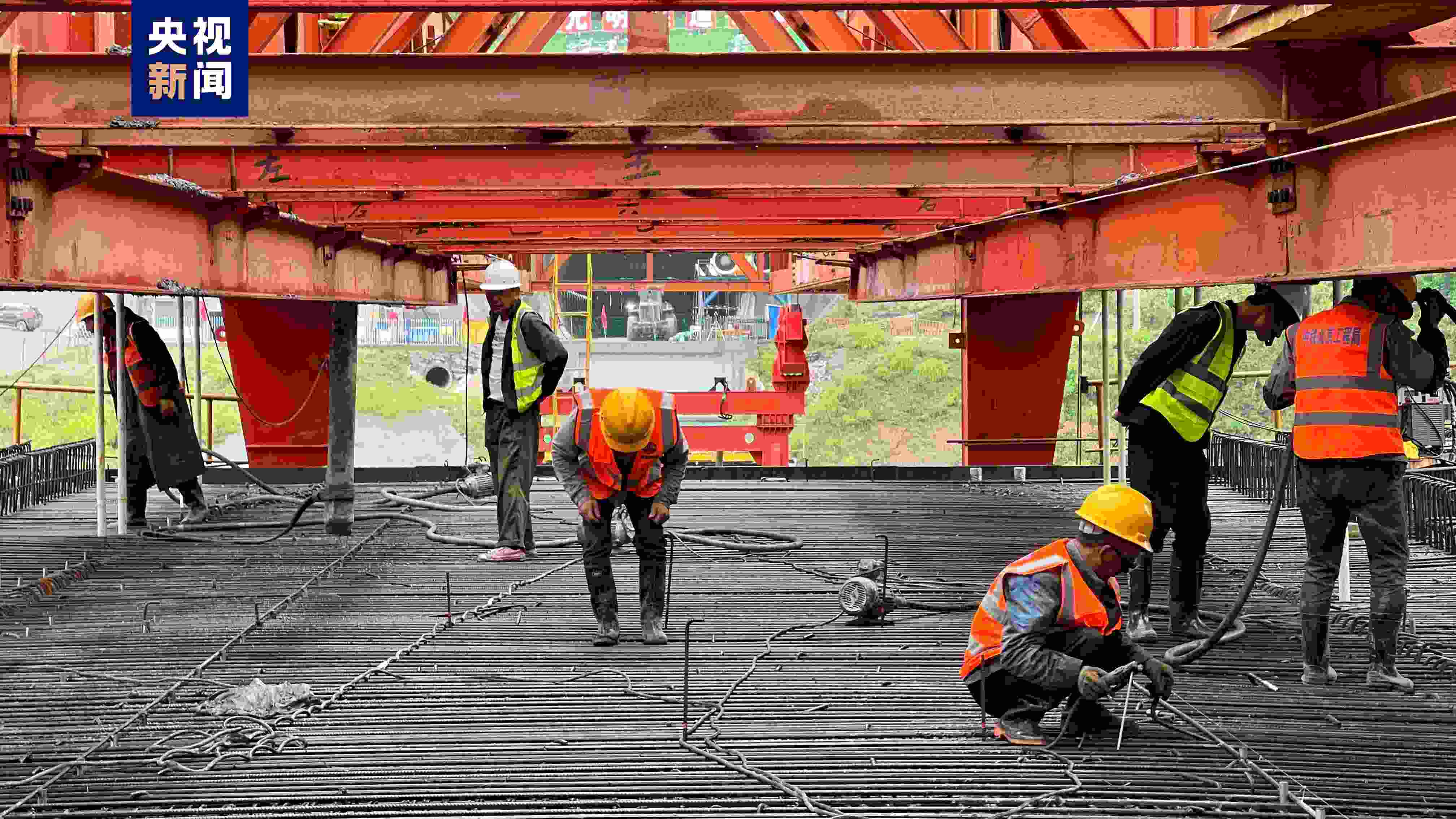 河水壩大橋位于重慶市開州區(qū)巫山鎮(zhèn)河龍村北側(cè),橋址跨越河谷地形起伏較大,植被茂密,水面寬約12米,橋址地層巖性主要為軟塑狀粉質(zhì)黏土,層厚約2.1米,具有承載力低、壓縮性高、厚度分布不均等特點,地質(zhì)條件較為復雜。本次澆筑成功的是河水壩大橋首孔現(xiàn)澆梁,經(jīng)過施工人員連續(xù)10小時的奮戰(zhàn),孔長32m,高3.03m,重約900t的移動模架現(xiàn)澆梁順利完成混凝土澆筑。據(jù)中鐵北京工程局成達萬高鐵項目一工區(qū)經(jīng)理烏小平介紹:“河水壩大橋首孔現(xiàn)澆梁采用移動模架現(xiàn)澆法施工,制梁具有機械化程度高、靈活性強、節(jié)約人力成本、施工周期短、使用輔助設備少、重復利用性高等特點,既保證了工程質(zhì)量,又能加快施工進度,具有良好的經(jīng)濟效益。”移動模架現(xiàn)澆法施工有效解決了控制性工程長大隧道架梁機無法及時架梁的問題,縮短了整體工期,確保項目按期順利推進。