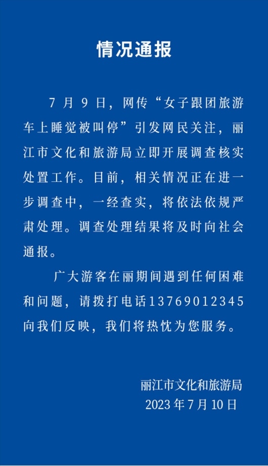 ·女子跟團(tuán)游車上睡覺(jué)被叫醒不許睡?麗江文旅局:立即調(diào)查。