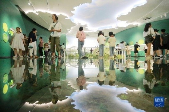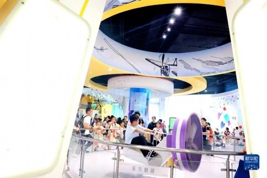 7月12日,小朋友在浙江省科技館里參觀體驗(yàn)。
