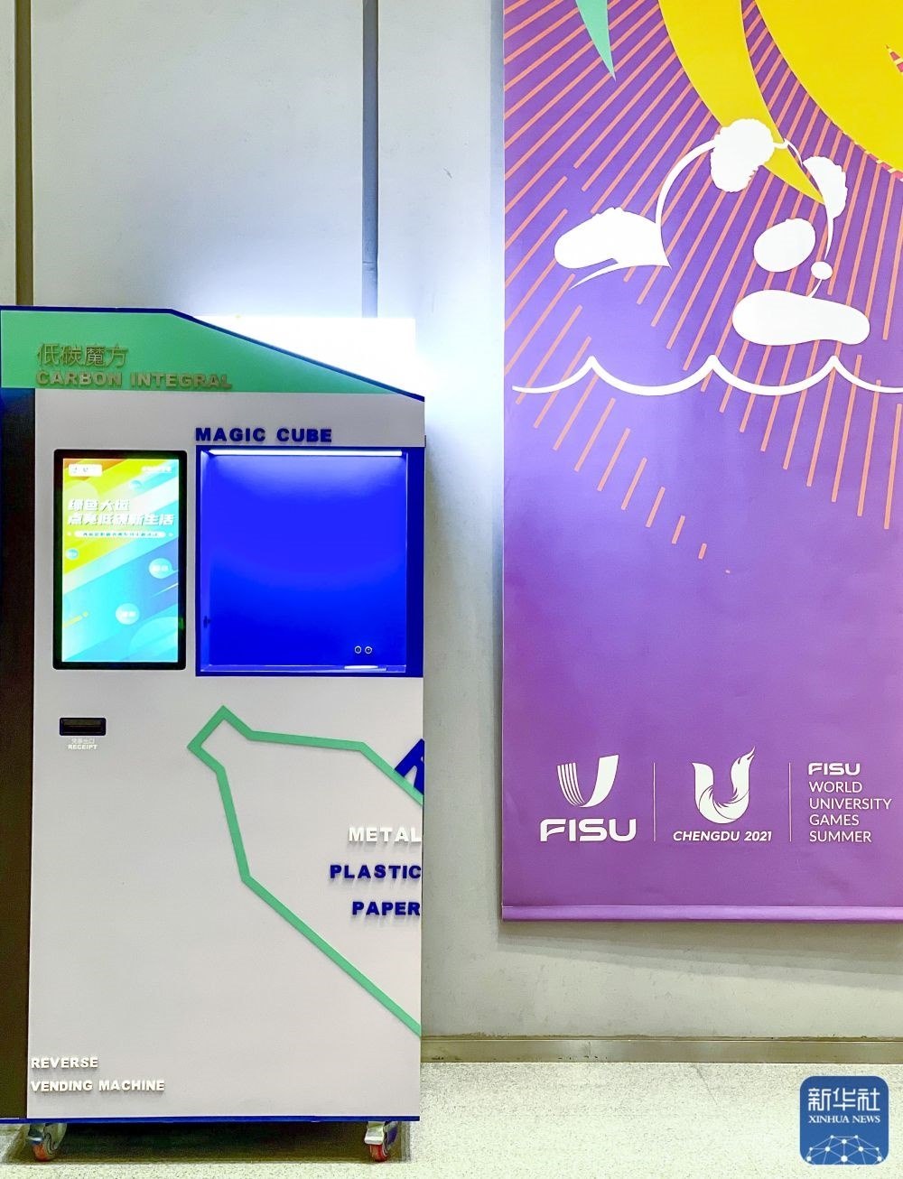 ↑這是6月28日在成都大運會開幕倒計時30天活動現(xiàn)場拍攝的“低碳魔方”。新華社記者 沈伯韓 攝