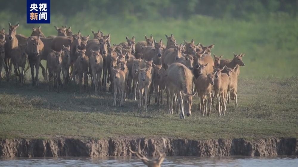 麋鹿寶寶扎堆,位于湖北荊州的石首麋鹿國(guó)家級(jí)自然保護(hù)區(qū)新生麋鹿達(dá)460頭。目前,保護(hù)區(qū)內(nèi)的麋鹿種群數(shù)量已經(jīng)達(dá)到近2000頭。
