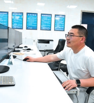 孫旭宏在密切監(jiān)測水量信息。本報(bào)記者 張 棖攝