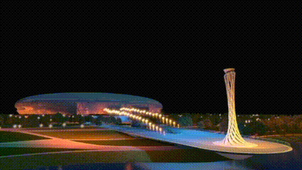 當(dāng)宣布本屆世界大學(xué)生運(yùn)動(dòng)會(huì)開幕時(shí),空中金色焰火熱烈綻放,隨后空中出現(xiàn)“歡迎”“WELCOME”字樣,隨著大運(yùn)會(huì)火炬塔被點(diǎn)燃,焰火在空中打出成都第31屆世界大學(xué)生夏季運(yùn)動(dòng)會(huì)U形會(huì)徽,體育場(chǎng)上空焰火呈現(xiàn)英文“Make Dreams Come True”,命運(yùn)與共,成就夢(mèng)想。